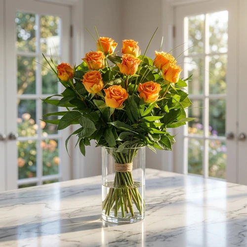 Lekker vrolijk oranje/zalm rozen vers laten bezorgen in heel Nederland.
