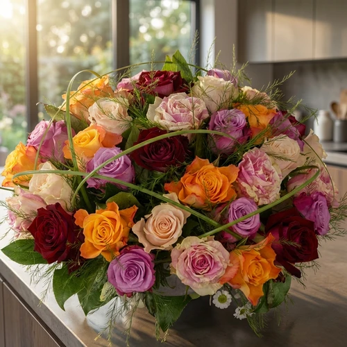 Bij ontvangst is het makkelijk en eenvoudig te plaatsen op een tafel.U hoeft de rozen niet meer in een vaas te schikken.