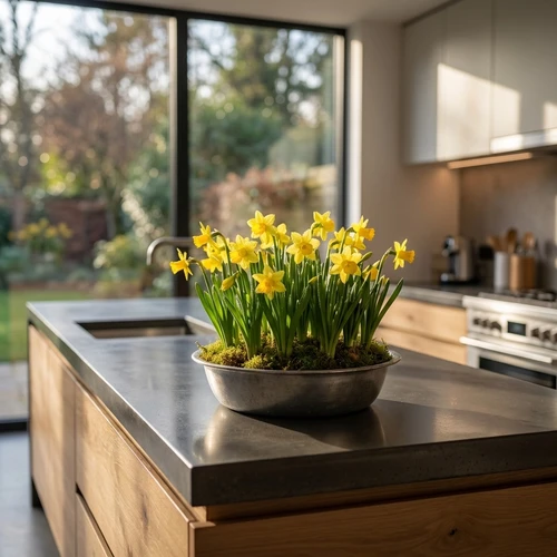 De narcis als voorjaarsbloemen, deze téte a téte narcissen zijn opgeplant in een schaal en komen prachtig in bloei in de huiskamer of bij een werkomgeving, ze geuren licht zoet en geven een vrolijk geheel aan de omgeving.