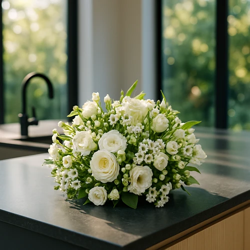 Door de beschikbaarheid kunnen de witte bloemen iets afwijken van de foto.