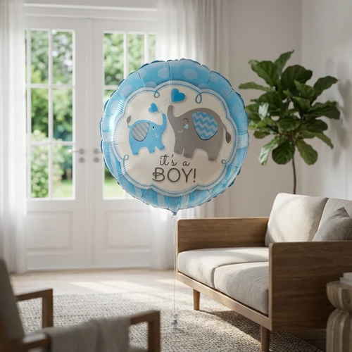 Een heliumballon voor een geboorte van een jongen in de prachtige blauwe kleuren en wit.