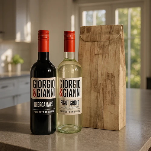 Twee prachtige wijnen van Giorgio & Gianni een rode wijn Negroamaro die soepel van smaak is maar vooral een zachte rode wijn die een mooie medium afdronk heeft.