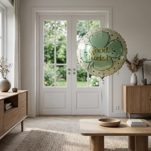 Een heliuballon met de tekst: "Good Luck" op de ballon. De ballon is voorzien van heliumgas een lint en gewichtje. De good luck heliumballon wordt verpakt in een luxe geschenkdoos .