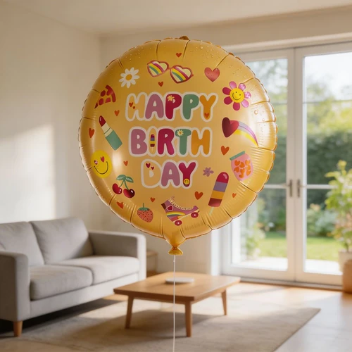 Een ballon gevuld met helium. Deze Happy Birthday heliumballon wordt gevuld met helium geleverd met lint en gewichtje er aan bevestigd.
