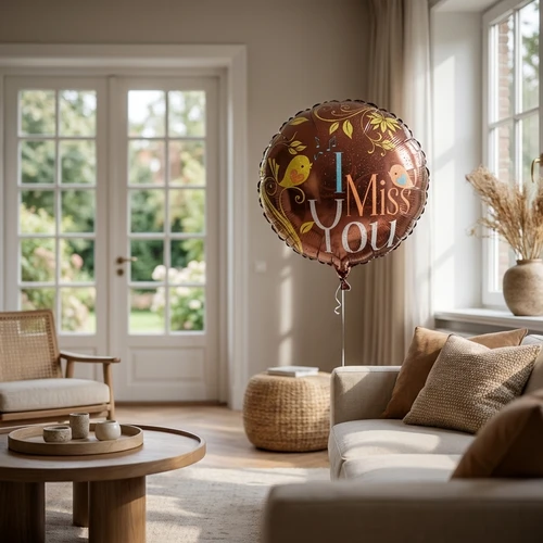 Een heliumballon met de tekst I miss you. Te bestellen met een rode roos of met een rode roos met een doosje bloemetjes chocolade van 140 gram.