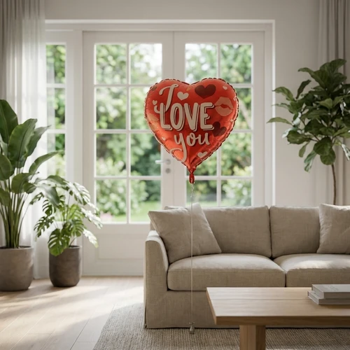 I love you ballon met een doorsnede van ongeveer 45 cm.