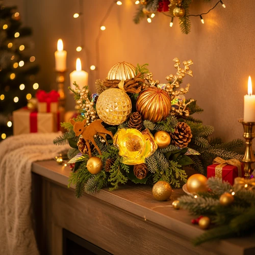 Dit kerststuk is heel bijzonder. In dit kerststuk zijn 3 magische kunstrozen verwerkt. Het bijzondere van deze kunstrozen is dat ze de kleur aannemen van de omgeving. Dus na afloop van de kerst, haal deze 3 rozen in ieder geval uit het kerststuk en bewaar de rozen voor decoratie in huis. Het zijn echte eyecatchers.