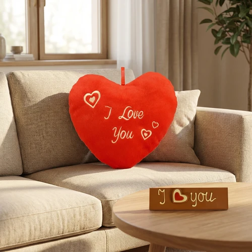Een prachtig rood pluche kussen in de vorm van een hart met een