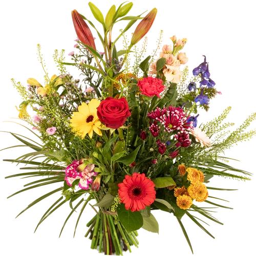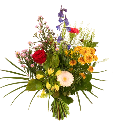 Een fleurig plukboeket voor elke gelegenheid, dat naar wens te combineren is met een fles wijn, doosje chocolade of een leuke heliumballon.