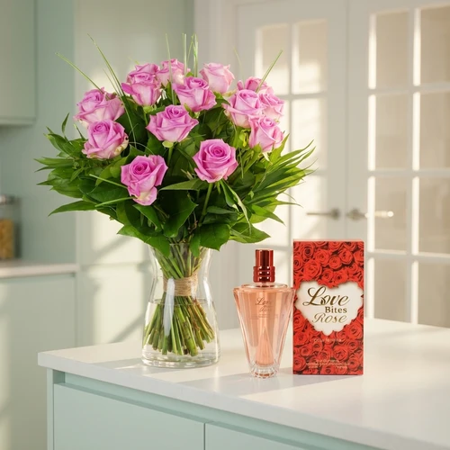 Dit boeket rozen rozen wiordt geleverd met een flesje gratis rozen parfum, verras jij jou Valentijn ?