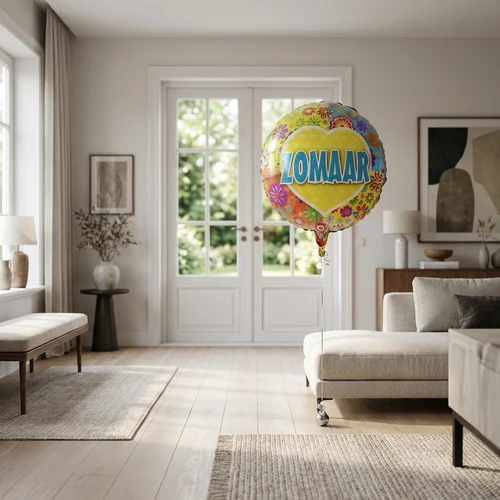 Er hoeft niet altijd een gelegenheid te zijn, verstuur deze Zomaar ballon. Gevuld met helium en met een lintje met gewichtje eraan.